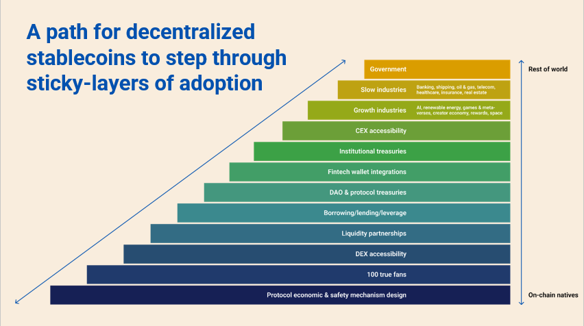 The path for decentralized stablecoins to step through sticky-layers of adoption, reminds me of a staircase. Many steps to climb.